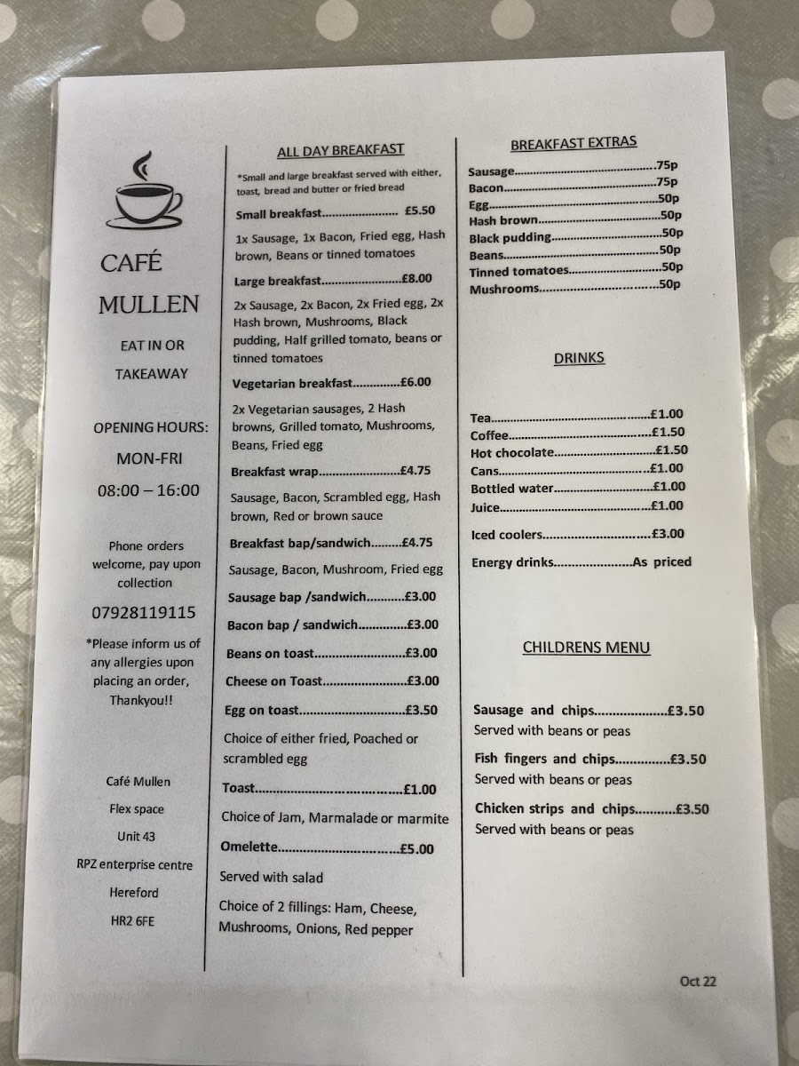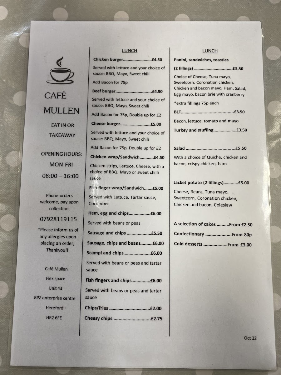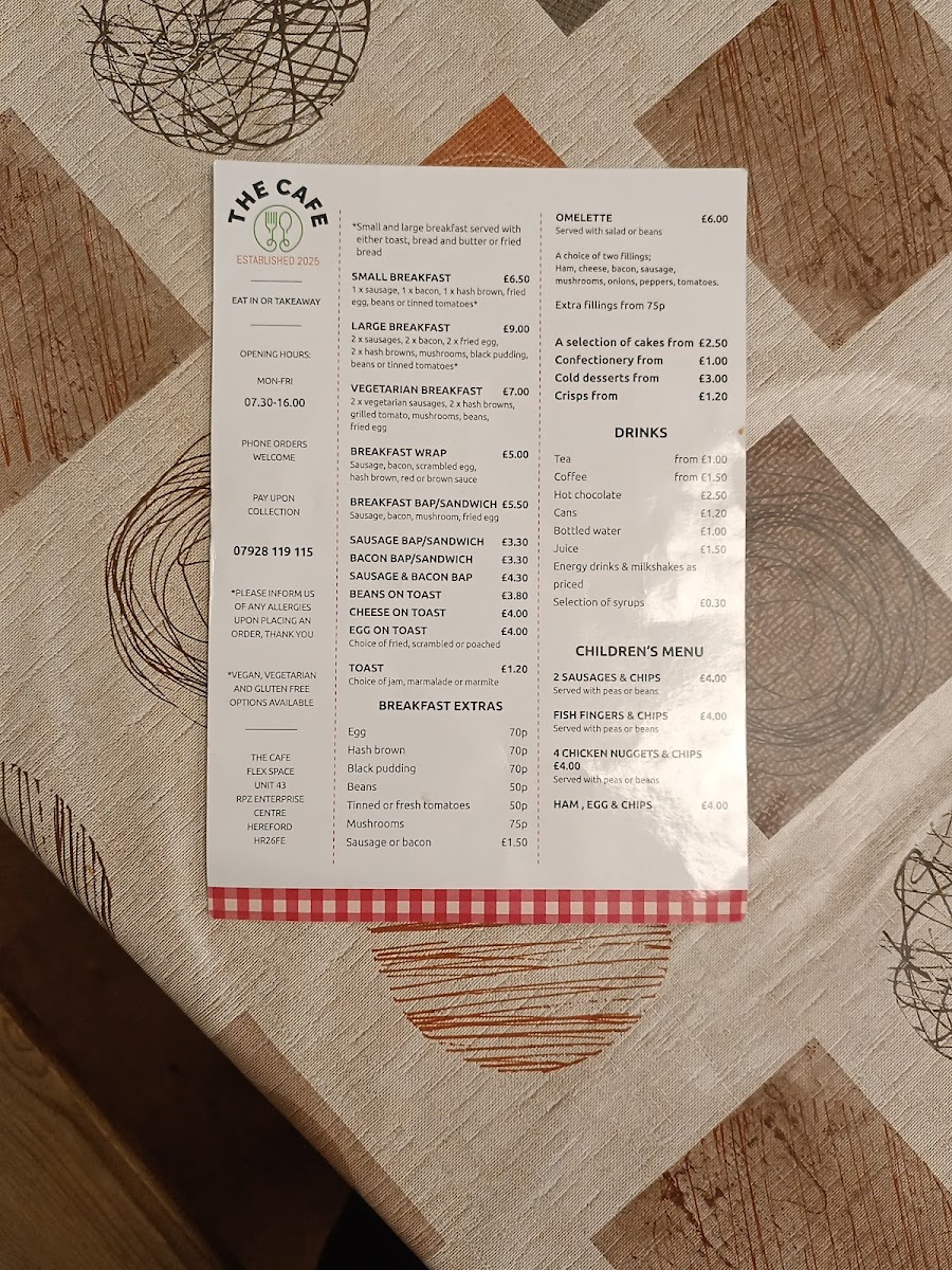 Welcome to THE CAFE, a delightful hidden gem nestled in the heart of Hereford at 43, Rural Enterprise Centre, 24 Vincent Carey Rd. With its warm, inviting atmosphere and friendly staff, this cafe is the perfect spot to unwind, indulge, and enjoy a meal made with care.